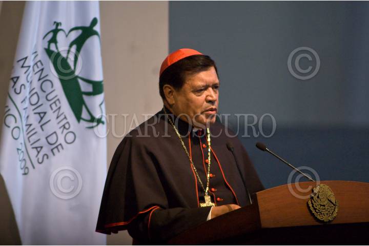MÉXICO D.F., 14ENERO2009.- Monseñor Carlos Aguiar Retes, el cardenal Ennio Antonelli, el presidente Felipe Calderón acompañada de su esposa Margarita Zavala y el Cardenal Norberto Rivera Carrera durante la sesión inaugural del VI Encuentro Mundial de las Familias 2009 que se realiza en el Centro de Exposiciones Bancomer del 14 al 18 Enero. FOTO: RODOLFO ANGULO/CUARTOSCURO.COM