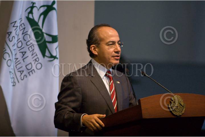 MÉXICO D.F., 14ENERO2009.- Monseñor Carlos Aguiar Retes, el cardenal Ennio Antonelli, el presidente Felipe Calderón acompañada de su esposa Margarita Zavala y el Cardenal Norberto Rivera Carrera durante la sesión inaugural del VI Encuentro Mundial de las Familias 2009 que se realiza en el Centro de Exposiciones Bancomer del 14 al 18 Enero. FOTO: RODOLFO ANGULO/CUARTOSCURO.COM