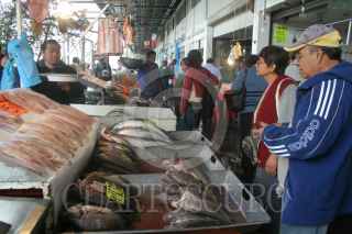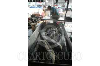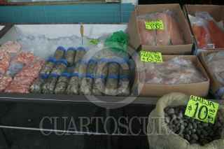 MÉXICO, D.F., 14ENERO2009.- En el mercado La Viga, las actividades diarias transcurren con normalidad ya que no se ven afectados por el paro pesquero que se vive en las costas del país, "En el mercado no habrá desabasto ni alza de precios". Dicho mensaje lo anuncio en conferencia de prensa, Jorge Toral Peña, Presidente del Consejo de Administración del Condominio La Nueva Viga S.C. FOTO: ENRIQUE ORDÓÑEZ/CUARTOSCURO.COM