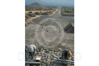TEOTIHUACAN, ESTADO DE MÉXICO, 14ENERO2009.- A pesar de que la UNESCO recomendó detener los trabajos para el espectáculo "Resplandor Teotihuacano", cuyo montaje se realiza en la zona arqueológica de las Pirámides del Sol y la Luna, los trabajadores continúan con las obras de conexión de cableado y luminarias. FOTO: MARIO NULO/CUARTOSCURO.COM