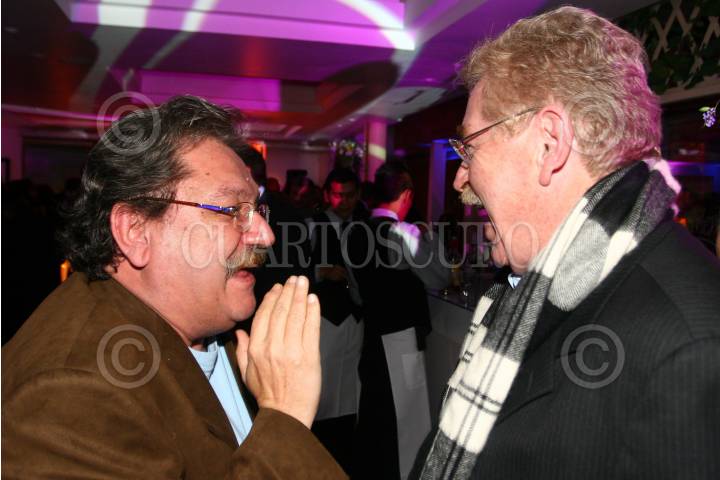 MÉXICO, D.F., 14ENERO2009.- Javier Gónzalez Garza, platica con el periodista Miguel Ángel Granados Chapa, durante el cocktail con motivo de su regreso a la radio de carmen Aristegui, en el 102.5 de MVS noticias. FOTO: SAÚL LÓPEZ/CUARTOSCURO.COM
