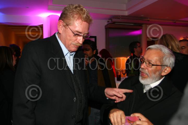 MÉXICO, D.F., 14ENERO2009.- Javier Gónzalez Garza, platica con el periodista Miguel Ángel Granados Chapa, durante el cocktail con motivo de su regreso a la radio de carmen Aristegui, en el 102.5 de MVS noticias. FOTO: SAÚL LÓPEZ/CUARTOSCURO.COM