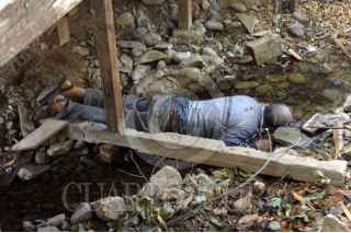 OAXACA, OAXACA, 15ENERO2009.- Un campesino fue hallado muerto debajo de un puente la mañana de este jueves en inmediación de san Felipe del agua, zona residencial al norte de la ciudad, fue descubierto por trabajadores que construyen una casa de lujo en esa zona. FOTO: MAX NÚÑEZ/CUARTOSCURO.COM