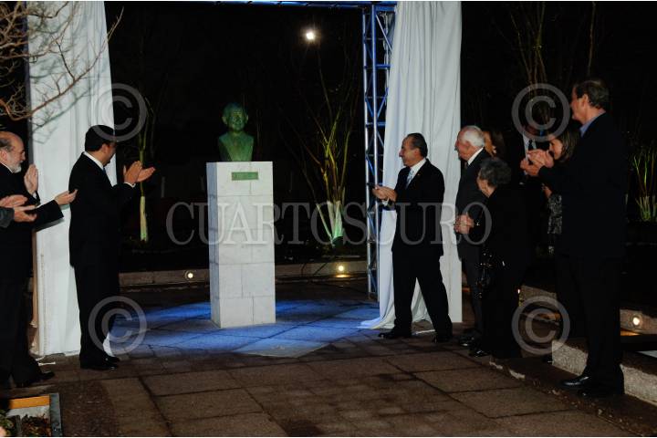 MÉXICO D.F., 15ENERO2009.- La dirigencia panista develó un busto de Luis H. Álvarez, en su sede nacional esto en el marco de un homenaje que se le brindó de quien fuera candidato a la Presidencia a la República en el año de 1958. En la ceremonia estuvieron Felipe Calderón, presidente de México, Germán Martínez, dirigente nacional y Vicente Fox Quesada, ex-presidente de la nación. FOTO: CUARTOSCURO.COM