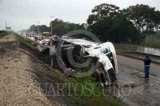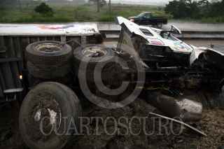 16ENERO2009.- Un trailer del gobierno federal perteneciente al programa de DICONSA cargado con maíz sufrió una volcadura tras ser impactado por una unidad compacta de la Procuraduría General de Justicia del estado de Tabasco. En el hecho de transito terrestre resultaron gravemente heridos seis personas sobre la carretera federal Villahermosa-Macuspana a la altura del poblado Dos Montes. FOTO: MARCO POLO GUZMÁN HERNÁNDEZ/CUARTOSCURO.COM