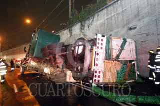 MÉXICO, D.F., 16ENERO2009.- En Eje Sur 8 Ermita Iztapalapa al salir del paso a desnivel de Calzada Tlalpan se volcó un trailer al romper su chais el cual transportaba más de 15 toneladas de limones. FOTO: LUZ ACEVEDO/CUARTOSCURO.COM