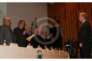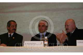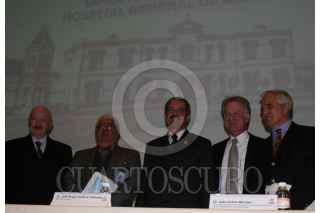 MÉXICO, D.F., 16ENERO2009.- Manuel Mondragon y Kalb, Secretario de Seguridad Pública del D.F.; Francisco Higuera Ramírez, director saliente del Hospital General de México; José Angel Cordova Villalobos, Secretario de Salud y Julio Sotelo Morales, titular de la comisión coordinadora de institutos nacionales de salud, durante la toma de protesta de Francisco Navarro, nuevo titular de este Hospital General. FOTO: MISAEL VALTIERRA/CUARTOSCURO.COM