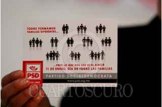 MÉXICO D.F., 16ENERO2009.- David Razú Aznar, Presidente del Comité Ejecutivo en el Distrito Federal del PSD, acompañado de Carmen Parra y Toledo Vicepresidenta del mismo comité en conferencia de prensa dieron a conocer la nueva campaña en contra de la discriminación. FOTO: GUILLERMO PEREA /CUARTOSCURO.COM
