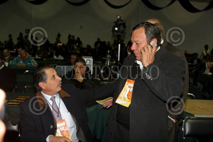 MÉXICO, D.F., 16ENERO2009.- El senador Graco Ramirez y la perredista Ruth Zavaleta, durante el primer pleno extraordinario del PRD que se realiza en expo reforma. FOTO: RICARDO CASTELAN/CUARTOSCURO.COM