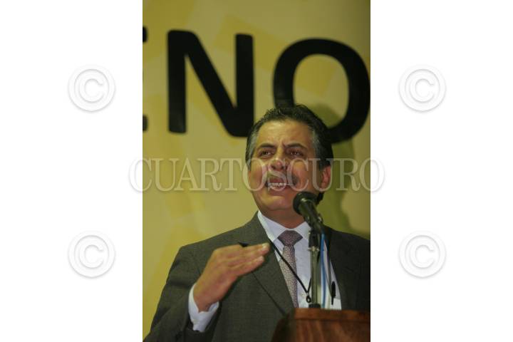 MÉXICO, D.F., 16ENERO2009.- El senador Graco Ramirez y la perredista Ruth Zavaleta, durante el primer pleno extraordinario del PRD que se realiza en expo reforma. FOTO: RICARDO CASTELAN/CUARTOSCURO.COM