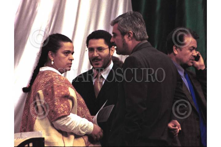 Felipe Calderón, representante del Pan en la Cámara de Diputados, junto con Martí Batres, representante del PRD, platican durante la sesión en el Palacio Legislativo. FOTO: Eunice Adorno/CUARTOSCURO.COM