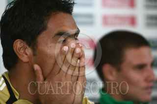 MÉXICO, D.F., 20ENERO2009.- Todo una polémica ha resultado la convocatoria de Lucas Ayala, jugador que actualmente milita en Atlas y naturalizado de origen argentino, a la concentración de la Selección Mexicana. Durante la conferencia de prensa posterior a el término del entrenamiento en el Centro de Alto Rendimiento el jugador atlista fue cuestionado sobre su condición de naturalizado por los medios de comunicación. FOTO: MOISÉS PABLO/CUARTOSCURO.COM