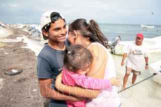CANCÚN, QUINTANA ROO, 20ENERO2009.- Luego de extraviarse en el Mar Caribe durante más de 24 horas, cuatro pescadores de la cooperativa Horizontes Marinos, que naufragaron entre Isla Mujeres y Cancún, fueron hallados con vida este martes al medio día, fueron recibidos por sus familiares. FOTO: ELIZABETH RUÍZ/CUARTOSCURO.COM