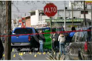 CIUDAD JUÁREZ, CHIHUAHUA, 20ENERO2009.- Un par de agentes de la Agencia Estatal de Investigación, fueron ejecutados en el interior de su vehículo cuando transitaban por el cruce de las calles 20 de Noviembre y Francisco Montes de Oca. Los cadaveres de los agentes identificados solo como Compean y Chavez, adscritos al departamento de autos robados quedaron en el interior del vehículo oficial y en el sitio fueron hallados mas de medio centenar de casquillos percutidos. De los agresores no se tiene alguna pista que de con su paradero. FOTO: J GUADALUPE PEREZ/CUARTOSCURO.COM