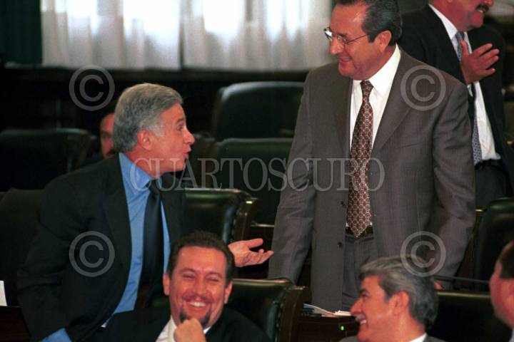 Jesus Ortega, coordinador de la fracción perredista en el Senado, dialoga con los senadores priistas Humberto Roque y José Natividad González Parás. FOTO:Oswaldo Ramírez/CUARTOSCURO.COM