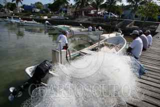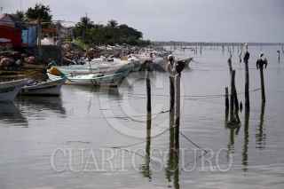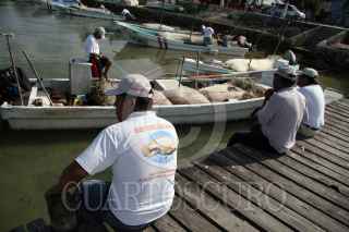 CHAMPOTÓN, CAMPECHE, 21ENERO2009.- Alrededor de doscientos pescadores rivereños en los distintos embarcaderos que se ubican sobre los litorales del Golfo de México se mantienen paralizados de sus labores diarias de pesca. Lo anterior se debe a que están en espera al llamado de su líder para tomar medidas drásticas como la toma de instalaciones de PEMEX, mientras permanecen en paro debido al alza del diesel. FOTO: MARCO POLO GUZMÁN HERNÁNDEZ/CUARTOSCURO.COM