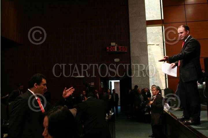 MÉXICO, D.F., 21ENERO2009.- Cesar Horacio Duarte Jaques, quien preside la mesa directiva de la Comisión Permanente del Congreso de la Unión, da el campanazo inicial de su sesión. FOTO: MOISÉS PABLO/CUARTOSCURO.COM