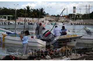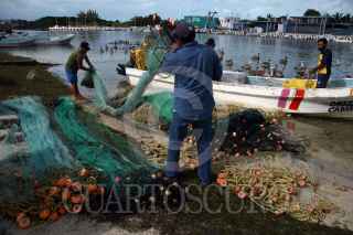 CHAMPOTÓN, CAMPECHE, 22ENERO2009.- Esta mañana muchos de los pescadores rivereños que están sumado al paro general de "Cero pesca" nada más llegaron para revisar que sus embarcaciones se encontraran sin algún desperfecto, como de igual manera revisaron sus paños ya que este día se vence el plazo que ellos mismo pusieron al gobierno federal de tomar instalaciones petroleras. FOTO: MARCO POLO GUZMÁN HERNÁNDEZ/CUARTOSCURO.COM