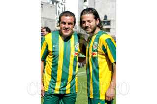 MÉXICO D.F., 22ENERO2008.- Cuauhtemoc Blanco y Diego Luna posan antes del juego amistoso entre el elenco de la pelicula Rudo y Cursi vs Televisa Deportes; encuentro que se realizo en el Centro Rayo. FOTO: ALBERTO VERA/CUARTOSCURO.COM