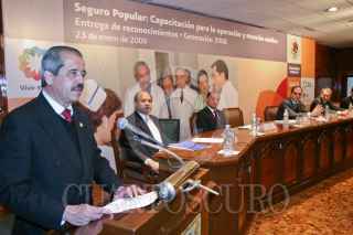 MÉXICO D.F., 23ENERO2009.- El dr. José Ángel Córdova Villalobos, secretario de salud durante su participación en la entrega de reconocimientos del Programa del Curso de Capacitación 2008 para la Operación del Seguro Popular y Atención Médica que se realizo en la Secretaria de Salud. FOTO: RODOLFO ANGULO/CUARTOSCURO.COM