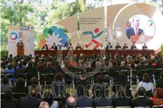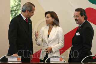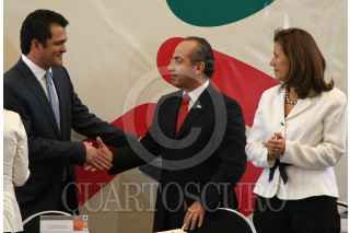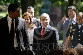 MÉXICO D.F., 23ENERO2009.- Carlos Hermosillo, titular de la CONADE y Andre Marin comentarista deportivo de TV Azteca al termino de la presentación de la estratégica nacional en materia de cultura física y deporte que se realizo en la explanada del monumento a Francisco I. Madero de Los Pinos. FOTO: RODOLFO ANGULO/CUARTOSCURO.COM