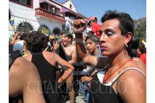 JIUTEPEC, MORELOS, 23ENERO2009.- Hoy inicio el tradicional carnaval de Jiutepec Morelos, en el cual se baila el brinco del chinelo acompañado con banda y donde se acostumbra que hombres se disfracen de mujeres y bailen todo el día a estos se les conoce como las buidas de juitepec, el carnaval dura 6 días en los cuales se festeja noche y día bebiendo y bailando. FOTO: LUIS GIRON/CUARTOSCURO.COM