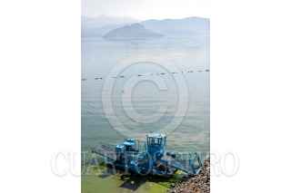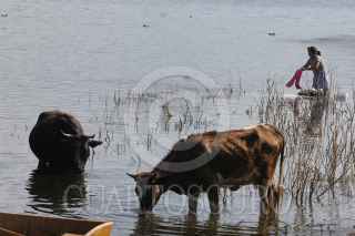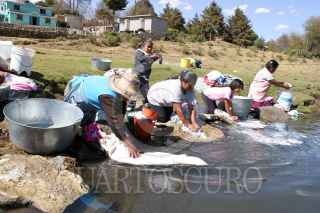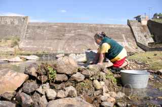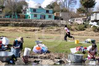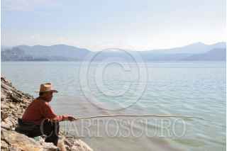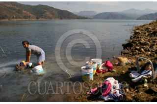 TOLUCA, ESTADO DE MÉXICO, 23ENERO2009.- El suministro a través del sistema Cutzamala se ha mantenido prácticamente durante los últimos 9 años pero este año las presas que aportan el agua, registran almacenamientos menores al promedio histórico, por lo que se prevé que al termino de la temporada de lluvias no se logren recuperar los niveles suficientes para mantener constante el suministro de agua por lo que la OCAVM ha solicitado al sistema de agua de la ciudad de México y a la comisión de agua del Estado de México reducir sus consumos indispensables, en la imagen la presa de Valle de Bravo una de las presas del sistema Cutzamala, en la imagen la una mujer lavando su ropa en ella. FOTO: RICARDO CASTELAN/CUARTOSCURO.COM
