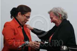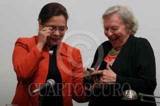 MÉXICO D.F., 23ENERO2009.- Maria Teresa Franco, directora del Instituto Nacional de Bellas Artes entrego el día de ayer por la noche la medalla de Bellas Artes a Ida Rodrigez Prampolini, por su trayectoria como escritora y critica del arte, esto durante una ceremonia en el Palacio de Bellas Artes. FOTO: RICARDO CASTELAN/CUARTOSCURO.COM