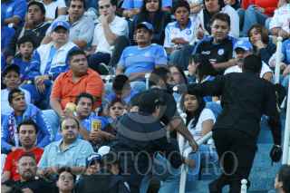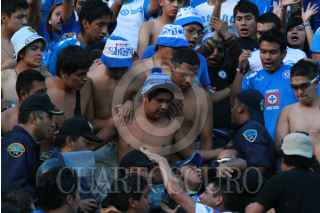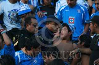 MÉXICO D.F., 24ENERO2009.- Durante el partido Cruz Azul-Atlas se dió un conato de bronca entre las porras y la policia. FOTO:SÁSHENKA GUTIÉRREZ/CUARTOSCURO.COM
