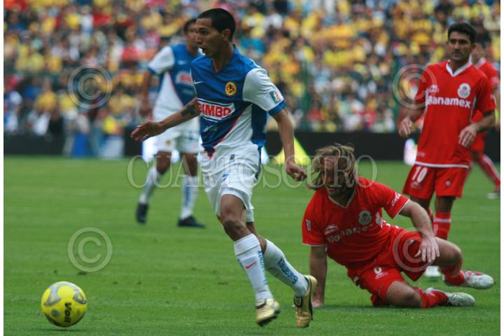 MÉXICO, D.F., 25ENERO2009.- En un duelo el campeón del futbol mexicano, los Diablos Rojos de Toluca, empató 2-2 con las Águilas del América en el Estadio Azteca, en el partido correspondiente a la fecha dos del Torneo Clausura 2009 del futbol mexicano. FOTO:SÁSHENKA GUTIERREZ/CUARTOSCURO.COM