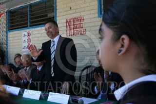 MÉXICO D.F., 26 ENERO2009.- Arturo Aispuro Coronel, Secretario de Desarrollo Urbano del D.F. acompañado de Axel Didricksson Takanayagui, Secretario de Educación, realizaron la presentación de “Azotea Verde Productiva” a estudiantes de la Escuela Secundaria Técnica No. 27. FOTO: GUILLERMO PEREA/CUARTOSCURO.COM