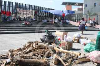 CHILPANCINGO, GUERRERO 26ENERO2009.- Planton indefinido que instalaron afuera del palacio de gobierno integrantes del Frente de Defensa Popular (FDP), para exigir solucion a sus diversas demandas sociales. FOTO: OSCAR ALVARADO/CUARTOSCURO.COM