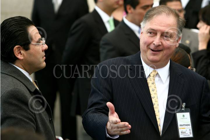 MÉXICO, D.F., 27ENERO2009.- Guillermo Ortiz Martínez, Gobernador del Banco de México, Gustavo Madero, Presidente de la Mesa Directiva del Senado y Agustín Carstens, Secretario de Hacienda, al finalizar el primer día de actividades de el foro "México Ante la Crisis: ¿Qué Hacer Para Crecer?" organizado por el Senado de la República. El encuentro de ideas se realizó en el Alcazar de Chapultepec y tuvo como anfitrión a la Cámara de Senadores. FOTO: MOISÉS PABLO/CUARTOSCURO.COM