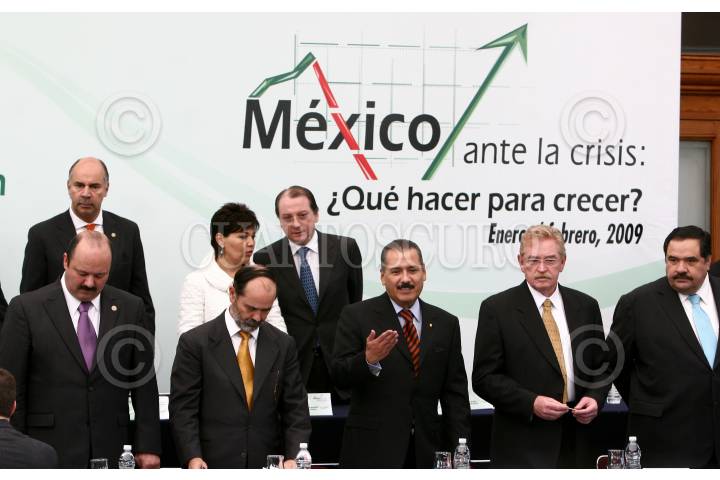 MÉXICO, D.F., 27ENERO2009.- Guillermo Ortiz Martínez, Gobernador del Banco de México, Gustavo Madero, Presidente de la Mesa Directiva del Senado y Agustín Carstens, Secretario de Hacienda, al finalizar el primer día de actividades de el foro "México Ante la Crisis: ¿Qué Hacer Para Crecer?" organizado por el Senado de la República. El encuentro de ideas se realizó en el Alcazar de Chapultepec y tuvo como anfitrión a la Cámara de Senadores. FOTO: MOISÉS PABLO/CUARTOSCURO.COM