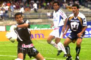 Gallos Blancos sorprendió al equipo universitario y al minuto 76 se puso adelante con la anotación de Alberto García, mientras que Pumas logró el empate por conducto de Mariano Trujillo al cobrar un penalty al 88 y salvar de la derrota a su escuadra en los últimos minutos. FOTO: Juan Pablo Zamora/CUARTOSCURO.COM