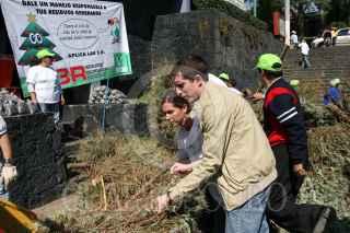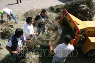 MÉXICO D.F., 28ENERO2009.- Integrantes del Partido Verde Ecologista de México, trituraron 500 árboles navideños para la elaboración de composta, con esto el partido pretende generar una política nacional para el tratamiento de residuos y eliminar la incineración de estos como método de disposición final. FOTO: GUILLERMO PEREA/CUARTOSCURO.COM