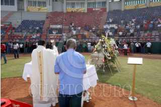 PTO. DE VERACRUZ, VERACRUZ, 29ENERO2009.- Falleció Jorge Calvo Cervantes, jugador de béisbol de Los Tigres de Cancún, a causa de un cáncer letal. Es acompañado por sus seres queridos en el Cementerio Jardines del Ángel, donde descansarán sus restos. FOTO: CUARTOSCURO.COM