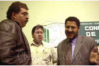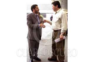 El coordinador del PRD en San Lázaro, Martí Batres, y Jaime Martínez Veloz, después de la conferencia de prensa en donde dieron a conocer una invitación al EZLN, para que asista al Congreso y forme parte de las discusiones sobre la reforma a la Ley Indígena, aprobada recientemente por la SCJN. FOTO: Juan Pablo Zamora/CUARTOSCURO.COM
