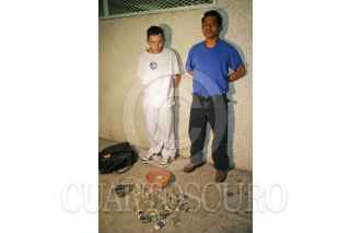 MÉXICO, D.F., 30ENERO2009.- Erick de Jesús Lopez de 19 años y Marin Juarez de 41 años, fueron detenidos en flagrancia por elementos de la policía capitalina con mas de 300 dosis de cocaína y marihuana, dinero en efectivo y teléfonos celulares en la colonia Guadalupe Proletaria de la delegación, Gustavo A. Madero. FOTO: LUZ ACAVEDO/CUARTOSCURO.COM