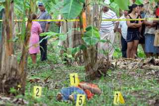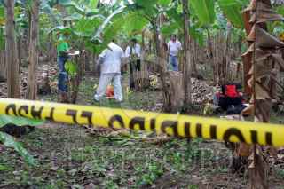 VILLAHERMOSA, TABASCO, 30ENERO2009.- Agentes ministeriales y peritos criminalistas examinan la escena del crimen donde el cuerpo sin vida de un hombre de aproximadamente 35 años fue encontrado dentro de un plantío de platanares. Los hechos se registraron sobre la ranchería el plátano y el cacao, primera sección. FOTO: MARCO POLO GUZM¡N HERN¡NDEZ/CUARTOSCURO.COM