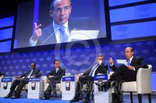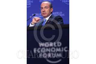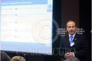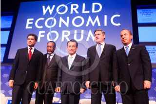 DAVOS, SUIZA., 30ENERO2009.- Felipe Calderón, Presidente de México, durante la mesa redonda con lideres mundiales denominada "Reviving Global Economic Growth" que se realizó en el marco de la reunión anual 2009 del foro económico mundial. FOTO: ALFREDO GUERRERO/CUARTOSCURO.COM
