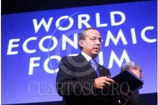 DAVOS, SUIZA., 30ENERO2009.- Felipe Calderón, Presidente de México, durante la mesa redonda con lideres mundiales denominada "Reviving Global Economic Growth" que se realizó en el marco de la reunión anual 2009 del foro económico mundial. FOTO: ALFREDO GUERRERO/CUARTOSCURO.COM