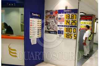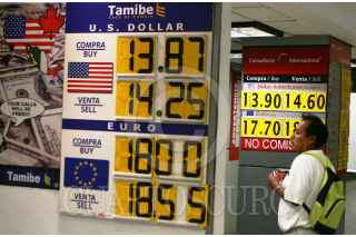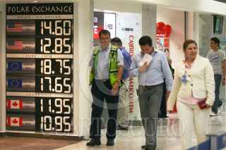 MÉXICO D.F., 30ENERO2009.- En centros cambiarios de la terminal aérea capitalina el dólar se compro desde 12.85 pesos y se vendio hasta 14.60 pesos mexicanos. Esta cifra toca otro maximo historico del dólar frente al peso mexicano. En la imagen una mujer cambia algunos dólares en una casa de cambio del aeropuerto. FOTO: SAÚL LÓPEZ/CUARTOSCURO.COM