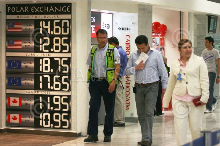 MÉXICO D.F., 30ENERO2009.- En centros cambiarios de la terminal aérea capitalina el dólar se compro desde 12.85 pesos y se vendio hasta 14.60 pesos mexicanos. Esta cifra toca otro maximo historico del dólar frente al peso mexicano. En la imagen una mujer cambia algunos dólares en una casa de cambio del aeropuerto. FOTO: SAÚL LÓPEZ/CUARTOSCURO.COM