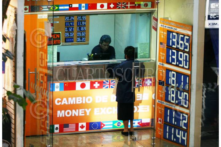MÉXICO D.F., 30ENERO2009.- En centros cambiarios de la terminal aérea capitalina el dólar se compro desde 12.85 pesos y se vendio hasta 14.60 pesos mexicanos. Esta cifra toca otro maximo historico del dólar frente al peso mexicano. En la imagen una mujer cambia algunos dólares en una casa de cambio del aeropuerto. FOTO: SAÚL LÓPEZ/CUARTOSCURO.COM