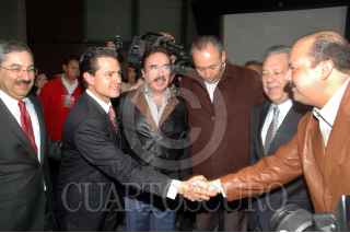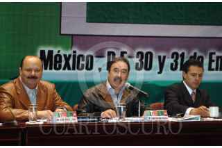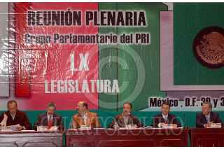 MÉXICO, D.F., 30ENERO2009.- José Reyes Baeza, gobernador de Chihuahua, José Natividad González Paras, gobernador de Nuevo León, Cesar Duarte Jáquez, Presidente de la Mesa Directiva de la Cámara de Diputados, Emilio Gamboa Patrón, coordinador de los diputados priistas, Enrique Peña Nieto, gobernador del Estado de México y Jesús Aguilar Padilla, gobernador de Sinaloa, durante los trabajos de la Reunión Plenaria del Grupo Parlamentario del PRI LX Legislatura, esta se realizó en un hotel del Centro Histórico. FOTO: IVÁN MENDEZ/CUARTOSCURO.COM