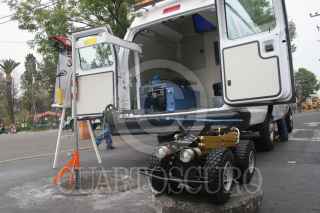 MÉXICO, D.F., 30ENERO2009.- Robots de vídeo para la inspección de las paredes del drenaje en Iztapalapa, fueron presentados el día de hoy, estos robots, revisaran las fisuras que tenga el subsuelo a si como deficiencias en el sistema de drenaje de esta delegación, esto durante un evento encabezado por el delegado de Iztapalapa, Horacio Mesa Martínez, en dicho evento se inauguro el Centro de Monitoreo de Subsuelo. FOTO: RICARDO CASTELAN/CUARTOSCURO.COM
