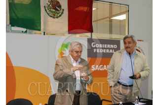 MÉXICO D.F., 30ENERO2009.- El titular de la SAGRAPA, Alberto Cardenas, a su salida del al hangar de la SAGARPA donde el dia de hoy pretendia realizar una firma de trabajo entre la SAGARPA y la Cámara Nacional de la Industria Pesquera y Acuícola (Canaipesca). Dicho acuerdo no se llevo acabo debido a que el presidente de la Cámara Nacional de la Industria Pesquera y Acuícola (Canaipesca), Rafael Ruiz no asistio al lugar. FOTO: SAÚL LÓPEZ/CUARTOSCURO.COM