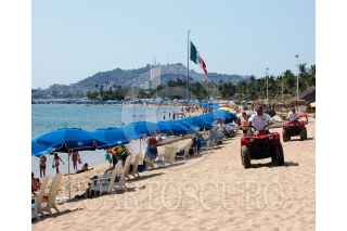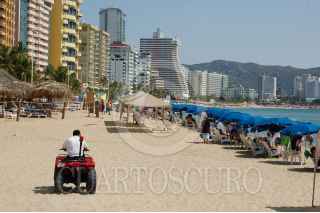 ACAPULCO, GUERRERO 30ENERO2009.- Un Policía Preventivo ahora bilingüe, recorre la zona de playa de Acapulco en una cautrimoto, donde turistas nacionales y extranjeros disfrutan de las calidas aguas de la Bahía. FOTO: MARIO D. VALADEZ/CUARTOSCURO.COM