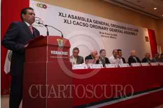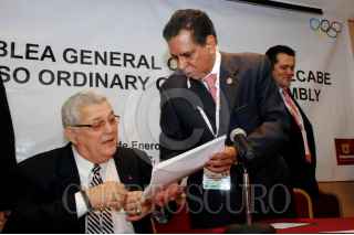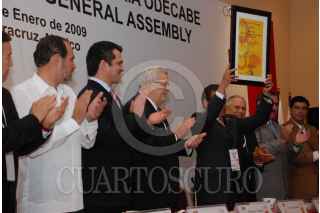 VERACRUZ, VERACRUZ, 30ENERO2009.- Carlos Hermosillo Goytortua, titular de la CONADE, y Felipe Muñoz Kapamar, presidente del Comité Olímpico Mexicano, previo al inicio de la XLI asamblea general ordinaria de la Organización Deportiva Centroamericana y del Caribe (ODECABE), donde se oficializó de manera formal la sede de la ciudad de Veracruz como sede de los juegos Centroamericanos y del caribe del 2014. FOTO: JOSÉ CANDELARIO/CUARTOSCURO.COM